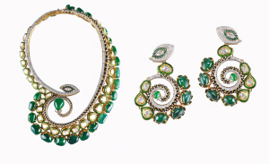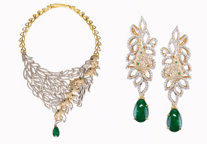 贊比亞祖母綠和鉆石、黃金。項鏈和耳環一套價格從$120,000起