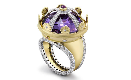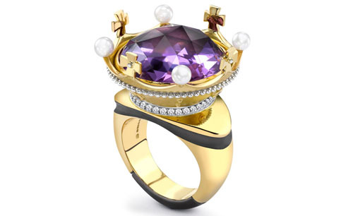 Theo Fennell :18克拉黃白K金鑲紫水晶鉆石珍珠皇冠戒指,12,500鎊