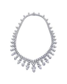 著名的TiffanyMajesticDiamondNecklace,由最高標準顏色、凈度與切工的圓型和梨型鉆石組成的精美絕倫的鉆石流蘇項鏈,柔軟的流線設計令人眼花繚亂。