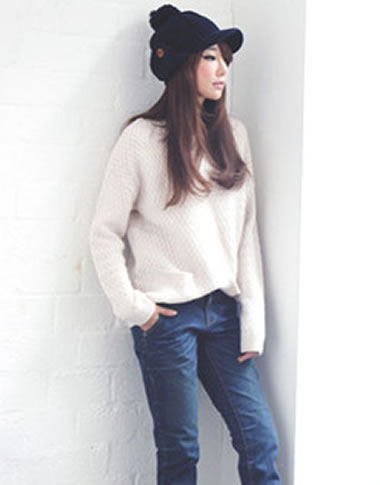 毛線帽也能詮釋帥氣灑脫的感覺,這款毛線帽稍微帶有一點貝雷帽的影子。頂部較圓潤一些,戴起來頭部有略微的膨脹感,不過帽檐的修飾立即有了巧妙的收縮效果,很顯臉小喲