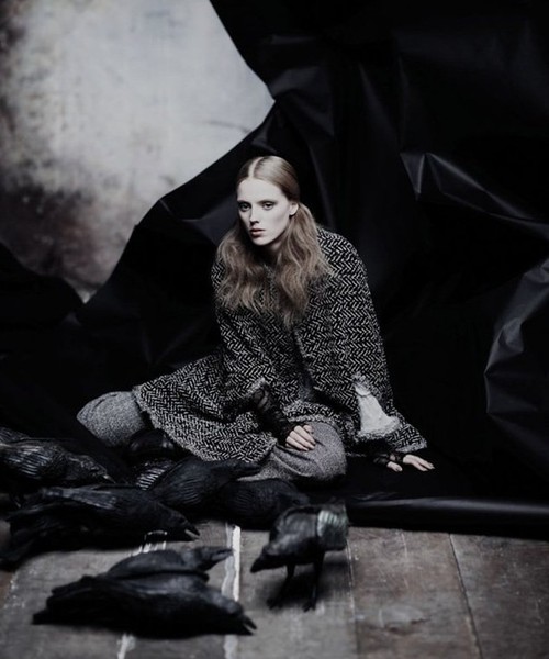 Chanel是個將黑色的美感發揚到極致的品牌,尤其是在當代攝影術的輔助下,這種美變得更加驚心動魄。某雜志以“詩意的奢侈Poetic Luxury”為題拍攝了這樣一組質感強烈的Chanel 2011秋冬季的新品,由攝影師Chris Nicholls掌鏡,強烈的對比和純凈的環境,都將黑白的Chanel時裝映襯得異常高貴動人
