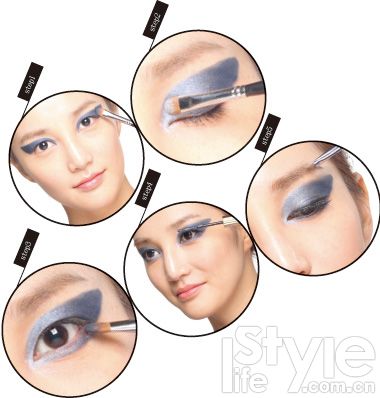 形狀全是靠刷子按上去的,一點(diǎn)一點(diǎn),像工筆畫,包括最后的尖角收尾,有點(diǎn)耐心。眼影粉是最佳選擇,只不過你可以先在手上磕一下,這樣不容易掉粉。