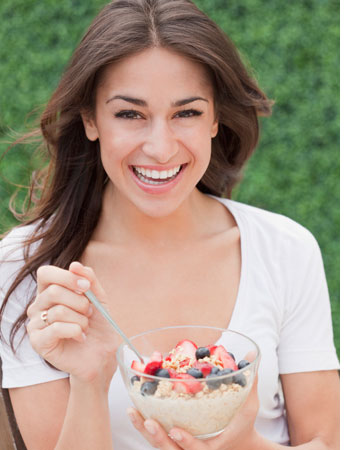 ??? 實(shí)情:減少飽和脂肪的攝入(紅肉和全脂牛奶中所含的),這對(duì)心臟和腰圍都有好處。動(dòng)物脂肪含量少的飲食還會(huì)阻止讓我們過(guò)早老化的自由基的生成。但是,你的肌膚仍然需要脂肪,尤其是堅(jiān)果和橄欖油中那些健康的脂肪,脂肪幫助你的身體吸收對(duì)肌膚有益的抗氧化劑和脂溶性維生素,鞏固細(xì)胞膜,最終改善表皮——給你一張露珠般的,柔軟的臉。