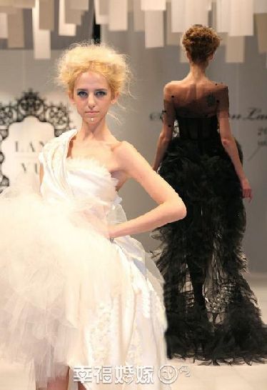 ??? 簡潔的黑與白、搖曳的拖尾、輕靈的透視、閃爍的水晶……在個人同名品牌蘭玉 (LAN-YU) 2012婚紗禮服系列中,設計師蘭玉將芭蕾藝術對純潔與妖嬈的極致表現力作為創作靈感,打造出十七款作品,描摹她心中的“天鵝湖”幻境。這位“85后”年輕中國女設計師的新作品,能否也得到你的認可呢?