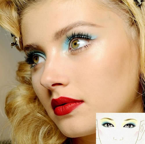 眼影混搭色:黃色和藍色