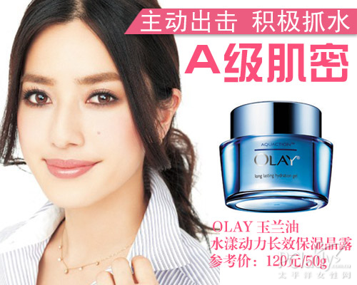 A級“肌密” 主動出擊積極抓水 這個冬季最潮的護膚新認知已經誕生,那就是化被動為主動,讓肌膚主動抓取水分,在干冷冬季積極吸取周遭空氣的水分,自然驅走暗沉,肌膚就像在濕潤的叢林中一樣有活力。 抓水密語:Olay水漾動力長效保濕晶露 如果你還不知道這個冬季水潤達人們都在談論的抓水藍晶靈那就OUT咯,改善肌膚天然保水屏障功能,幫助提升肌膚主動保濕能力,這款抓水小物蘊含的聚水能量配方完美實現了護膚樂活主義的“主動抓水”概念,讓肌膚享受源源不斷的強勁水動力 ?