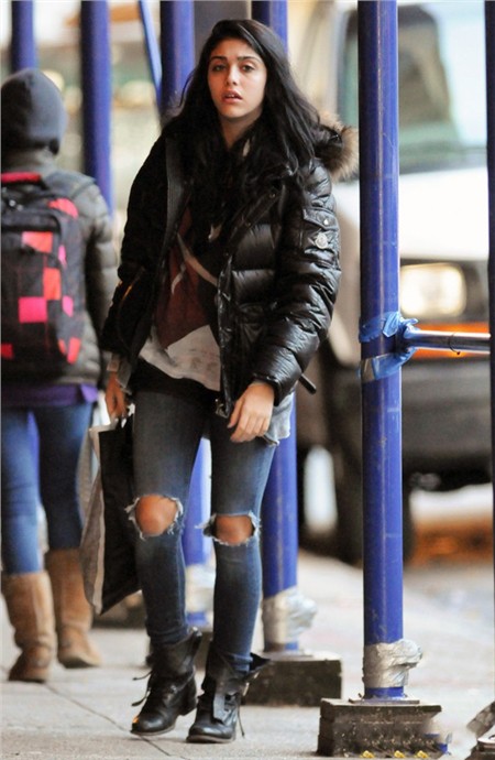 時尚解析:同是破洞牛仔褲,搭配上高筒靴,似乎就沒那么冷了,上身也是包得嚴嚴實實的,又是連帽衫、又是羽絨服,又是帽子的,看來也不是不怕冷啊,只是為了時尚而露膝蓋