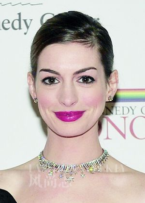 緊緊盤起的發型盡顯精致的面容輪廓,玫紅色唇格外搶眼,眼妝只用眼線和睫毛勾出輪廓感就好