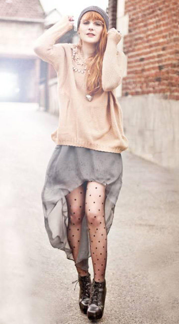波點和黑絲都是絲襪元素里的寵兒,淺色黑絲與圓點的結合宛如動畫片人物一樣可愛