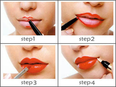 上唇線的勾勒,是用唇線筆從外嘴角由下向上連到唇峰,下唇線的勾勒則是由外嘴角從外向內(nèi)連接到點(diǎn)的位置,這樣的話即使新手也可以描繪出有輪廓感的紅唇線條。