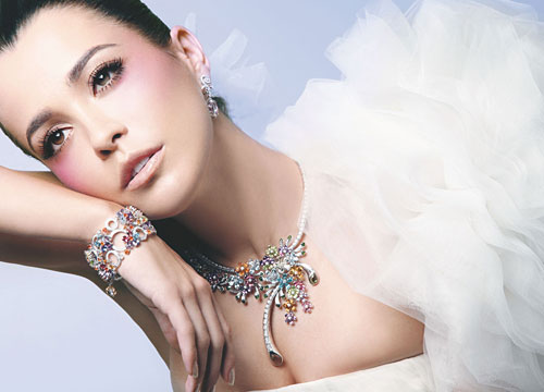 在新的一年開啟新的旅程之際,充滿了歡樂和激情,讓絢麗的彩色寶石加上夸張的美麗造型,伴隨完美曲線釋放出動人的魅力,讓新娘在婚堂和派對上都大放異彩。