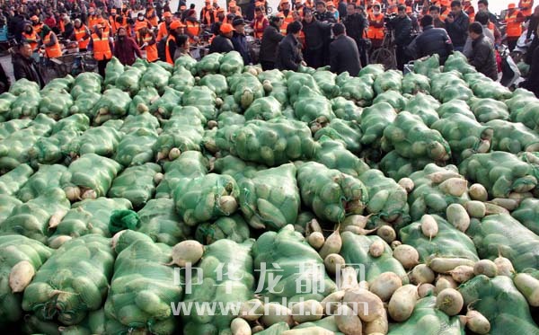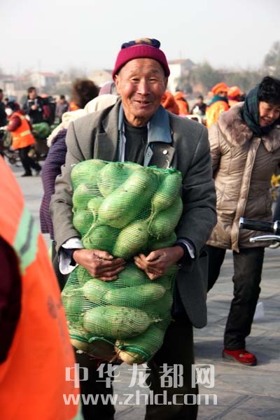 當天上午,淮陽縣太昊陵廣場人頭攢動,1000余名貧困家庭代表早早地來到現場等候。9時許,“愛心蘿卜”開始免費發放。僅一上午時間,20萬斤蘿卜就被認領一空。