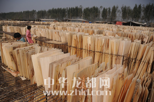 ????一進入商水縣白寺鎮境內,你就會聞到新鮮木材散發的清香。公路沿線,白色板皮一望無際。一個鄉鎮,一個產業,一年實現產值20多億元。白寺鎮的板材加工業,從20多年前的一兩家企業,到現在的1000多家單板旋切廠,板材加工業已成為白寺鎮響當當的品牌了。