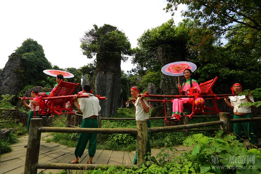 ????幺妹和幺哥在為游客展演自己的靚麗與帥氣。