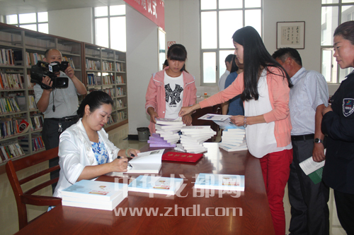 ????昨日16時,在市圖書館綜合閱覽室,市文化局曹克宏、市圖書館李佳和本報田維國、董雪丹等各單位相關負責人參加了捐贈儀式,曹克宏向柳韻頒發了愛心捐贈榮譽證書。捐贈儀式結束后,柳韻在現場舉行了簽字贈書活動(如圖)。面對讀者的熱情,柳韻一一簽字贈書,現場又簽贈系列圖書近百冊。