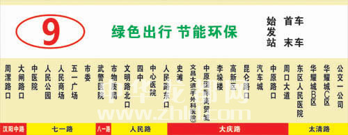 調整后,9路公交車的運行線路是:從周漯路口出發,經漢陽中路、七一路、八一大道、人民路、大慶路,最后經太清路到達華耀城終點站,往返運行。