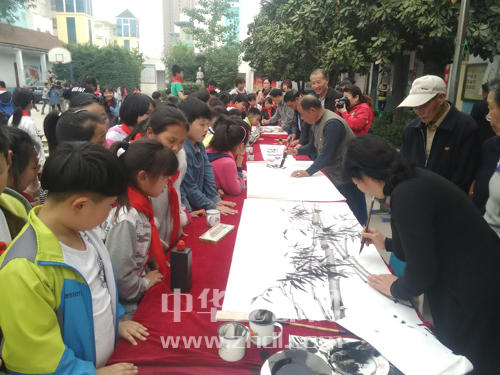 ????4月25日下午,市直老年書畫研究會的書畫愛好者走進(jìn)市經(jīng)濟(jì)開發(fā)區(qū)韓營小學(xué),開展“書畫下基層”活動(dòng)。十多位老年書畫愛好者在現(xiàn)場揮毫潑墨,即興創(chuàng)作,讓該校學(xué)生近距離感受傳統(tǒng)文化的魅力。晚報(bào)記者 張燕 攝