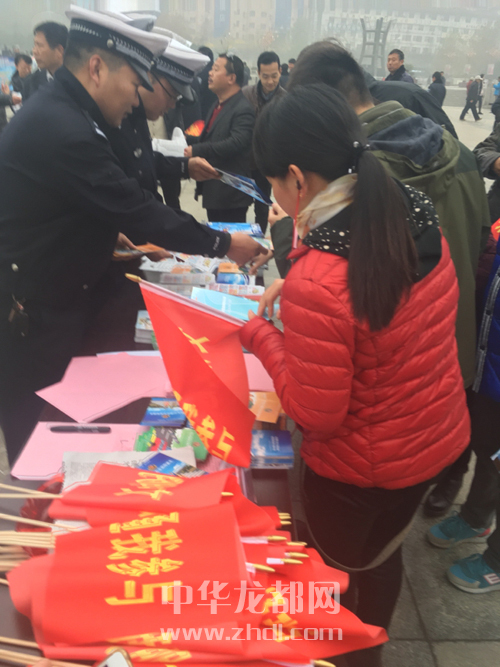 ????11月20日8時許,周口市“文明交通安全月”主題活動啟動儀式在周口市區五一勞動廣場舉行。我市交管部門工作人員和出租車司機、公交車司機、普通市民等參加了啟動儀式。晚報記者 朱東一 攝