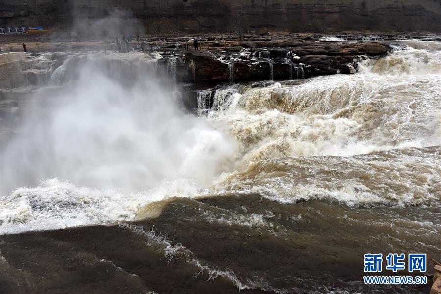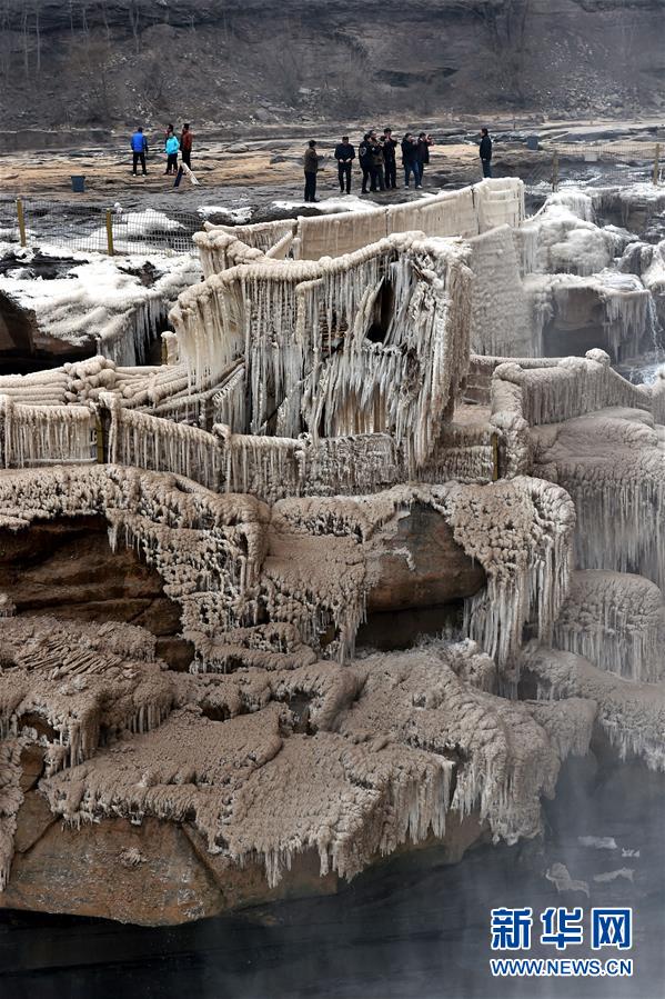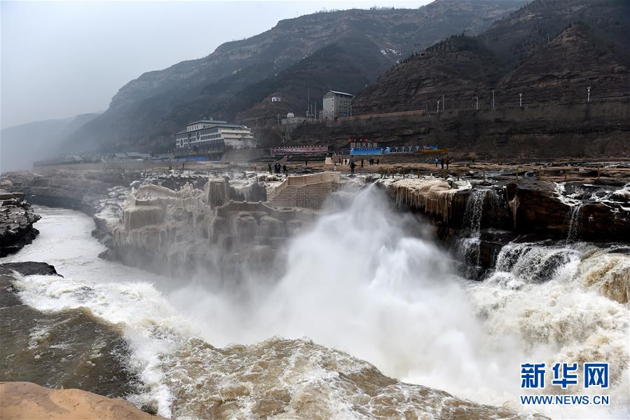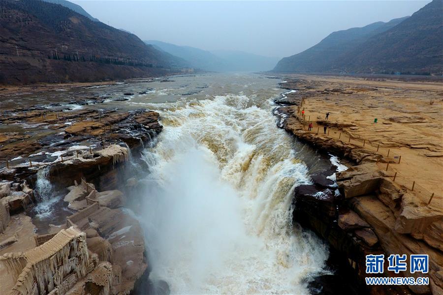 ????這是1月5日航拍的黃河壺口瀑布。隆冬時節,位于山西省吉縣和陜西省宜川縣交界的黃河壺口瀑布仍奔流不息。奔騰咆哮的黃河水翻滾而下,氣勢磅礴,甚為壯觀。 新華社記者 詹彥攝