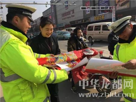 中華龍都網訊(周口報業全媒體本報記者 韋偉 通訊員王向靈 郭力銘)“這位大姐,剛才紅綠燈時您能按時等候,這是對您的獎勵。”2月8日上午,記者在沈丘縣街頭看到,面對遵守法規、文明出行的市民王女士,交警劉濤給她送上一套紅紅的新春對聯。