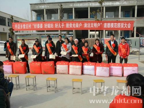 中華龍都網(wǎng)訊(周口報(bào)業(yè)全媒體記者 付永奇 趙永昌 文/圖))2月10日下午,商水縣平店鄉(xiāng)曾莊小學(xué)操場(chǎng)內(nèi),人頭攢動(dòng)、熱鬧非凡,村里評(píng)選出來(lái)的10位好婆婆、好媳婦、好兒子、清潔文明戶、脫貧光榮戶等“五好”群眾代表身披綬帶、胸戴紅花,臉上都洋溢著幸福的喜悅;一些民間文藝團(tuán)體分別助興表演了挑花籃、扇子舞、廣場(chǎng)舞等喜慶的節(jié)目,把現(xiàn)場(chǎng)氣氛烘托得異常隆重?zé)崃摇!盀楹霌P(yáng)社會(huì)公德、家庭美德,提升群眾素質(zhì)和文明程度,春節(jié)來(lái)臨之際我們召開(kāi)‘五好’表彰大會(huì),下面有請(qǐng)鄉(xiāng)黨委副書記、鄉(xiāng)長(zhǎng)徐汝濤給大家講話......”隨著主持人、鄉(xiāng)紀(jì)委書記劉新光的開(kāi)場(chǎng)白,臺(tái)下響起了一陣熱烈的掌聲。“開(kāi)展好婆婆、好媳婦、好兒子、清潔文明戶、脫貧光榮戶等模范家庭人物評(píng)選是我鄉(xiāng)精神文明建設(shè)工作的一項(xiàng)重大舉措,也是脫貧攻堅(jiān)、農(nóng)村人居環(huán)境整治、文明鄉(xiāng)風(fēng)提升的部分內(nèi)容,更是弘揚(yáng)孝親敬老、勤勞致富、講究衛(wèi)生等優(yōu)良傳統(tǒng)的需要。全鄉(xiāng)各村都要通過(guò)召開(kāi)評(píng)選表彰大會(huì),引導(dǎo)廣大人民群眾學(xué)先進(jìn)、爭(zhēng)先進(jìn),為文明和諧平店建設(shè)做出更大的貢獻(xiàn)......”徐汝濤提出殷切的希望。曾莊行政村“兩委”成員、駐村工作隊(duì)、第一書記及部分群眾200余人參加了會(huì)議。與會(huì)領(lǐng)導(dǎo)為此次層層推薦評(píng)選出的好婆婆、好媳婦、好兒子、清潔文明戶、脫貧光榮戶頒發(fā)了榮譽(yù)證書和獎(jiǎng)品。據(jù)村支部書記曾紀(jì)靈介紹,這些“五好”模范都有感人的故事,或是講究衛(wèi)生、勤儉持家,孝老敬親、患難與共;或是鄰里互助、脫貧致富;他們用實(shí)際行動(dòng)證明了自己對(duì)文明風(fēng)尚的價(jià)值追求,在生活中書寫了一個(gè)個(gè)接地氣的好故事,為廣大家庭樹(shù)立了好榜樣。受表彰的好婆婆胡秀英說(shuō):“把媳婦當(dāng)閨女,啥時(shí)候也不會(huì)吵架生氣......”清潔文明戶朱國(guó)申說(shuō):“農(nóng)村環(huán)境臟亂差,咱要帶頭改變它......”脫貧光榮戶劉前進(jìn)說(shuō):“國(guó)家扶貧政策好,不如早點(diǎn)摘掉貧困帽!”