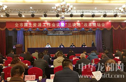 中華龍都網訊(周口報業全媒體記者徐松文/圖)3月20日,全市國土資源工作會議暨“三塊地”改革現場會在鄲城縣召開,市政府副市長洪利民參會并講話,市國土資源局黨組書記、局長申奇作工作報告,鄲城縣政府縣長李全林致辭,鄲城縣、太康縣、淮陽縣、項城市政府作典型發言。會議由市政府副秘書長孫鴻俊主持。