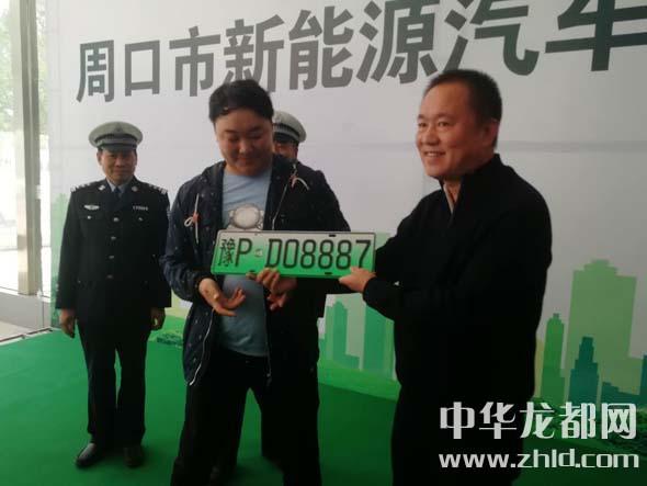 中華龍都網訊(周口報業全媒體記者 姬慧洋 陳永團 文/圖)4月10日上午10時,在市區太清路與昆侖路交叉口附近,我市新能源汽車號牌發放儀式啟動,在啟動儀式上周口市公安局交通管理支隊支隊長謝偉親手將“豫PD08887”這副新能源汽車號牌送到車主張磊的手中。據介紹,為了能夠盡早選到自己心儀的號牌,家住市區漢陽路附近的張磊一大早就趕到了位于建設大道與周口大道交叉口周口幼師北門附近的萬達便民服務站,在現場通過“50選1”的號牌選擇方式,喜獲自己心儀的號牌。