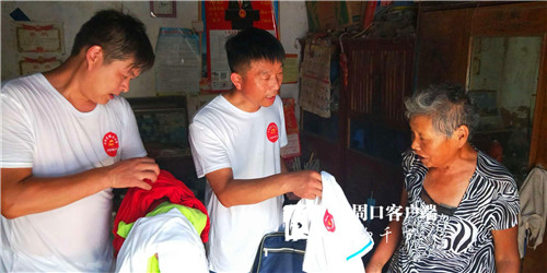 捐贈儀式上,太康縣商務局局長李曉虹和清集鎮黨委書記吳文靜向張子穎村捐贈愛心體恤衫。隨后由各位領導帶隊向困難群眾發放愛心體恤衫,并鼓勵他們樹立信心、克服困難,早日走向富余。