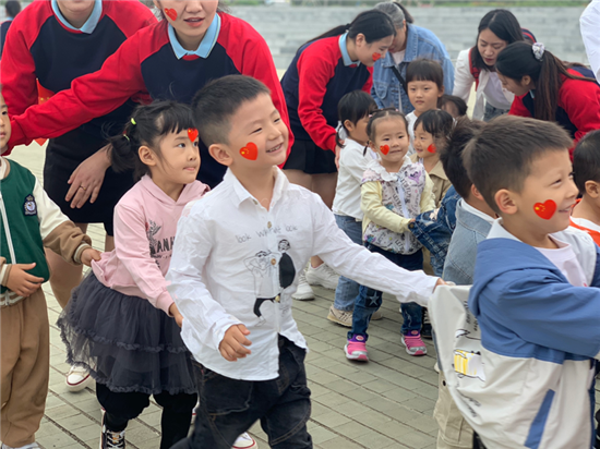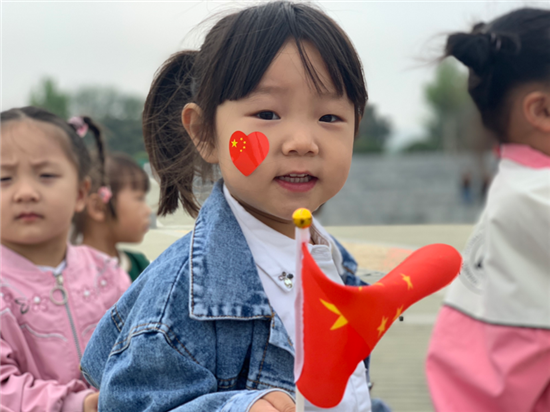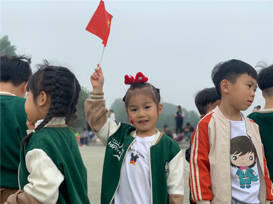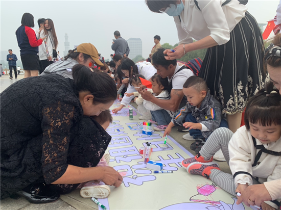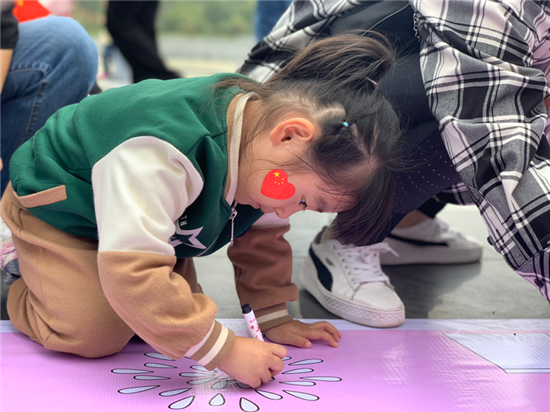 9月30日上午,在周口公園里,一群幼兒園的小朋友通過做游戲,涂畫卷等活動歡度國慶節。②9