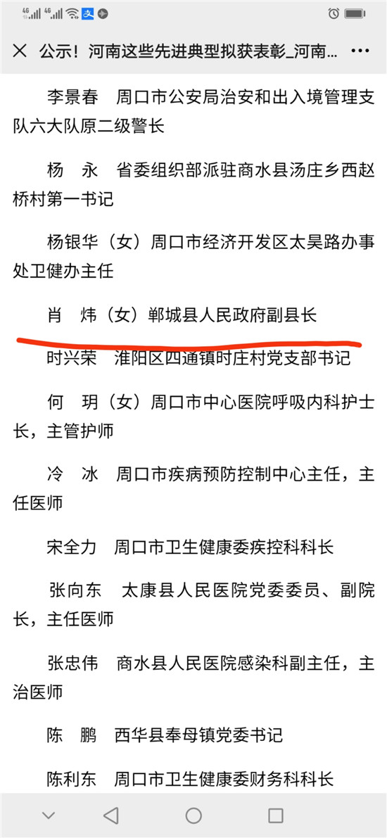 10月10日,河南省委、省政府表彰了一批抗擊新冠肺炎疫情先進(jìn)個(gè)人、河南省抗擊新冠肺炎疫情先進(jìn)集體、河南省優(yōu)秀共產(chǎn)黨員、河南省先進(jìn)基層黨組織。其中,鄲城縣副縣長(zhǎng)肖煒,縣第二人民醫(yī)院援鄂醫(yī)生、主治醫(yī)師仵福全,縣人民醫(yī)院重癥醫(yī)學(xué)科ICU主任、副主任醫(yī)師王劍橋3位同志,被評(píng)為河南省抗擊新冠肺炎疫情先進(jìn)個(gè)人。