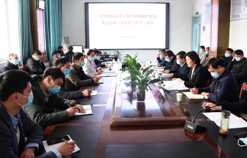 3月5日下午,中共鄲城縣第三醫(yī)療健康服務(wù)集團(tuán)委員會(huì)第一次黨委(擴(kuò)大)會(huì)議在總醫(yī)院鄲城縣中心醫(yī)院(原鄲城二院)小會(huì)議室召開(kāi)。集團(tuán)黨委委員出席,總醫(yī)院及轄區(qū)基層醫(yī)療衛(wèi)生單位黨支部委員參加,黨辦主任韓學(xué)貞主持會(huì)議。