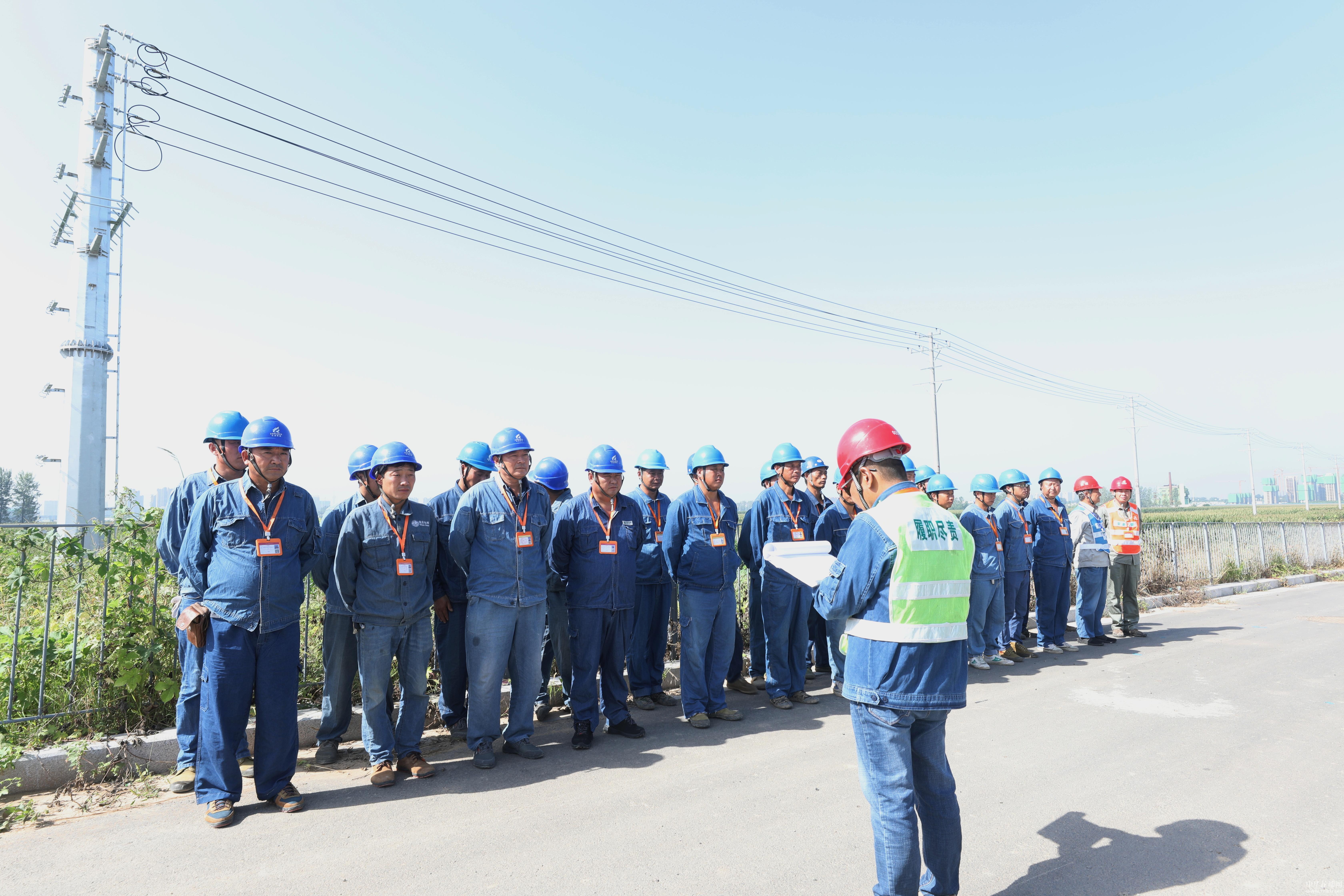 8月25日,在周口野生動物世界第二電源工程項目施工現場,30多名電力施工人員正在對40基桿塔引線進行校正、綁扎、緊線作業。