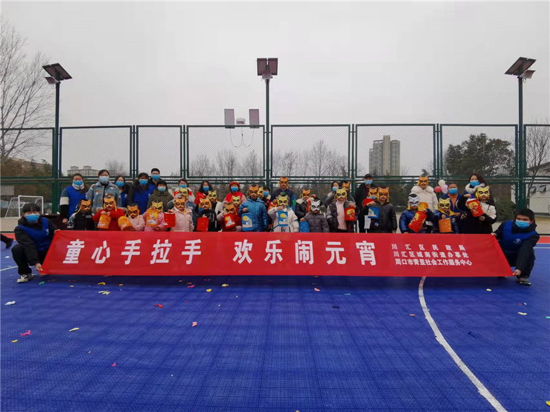 踩氣球、套圈、猜燈謎……2月15日是元宵節,川匯區城南街道辦事處聯盟新城社區廣場上人聲鼎沸,熱鬧非凡,一群戴著老虎面具的“虎娃”正在參加由川匯區民政局、川匯區城南街道辦事處、周口市青昱社會工作服務中心舉辦的“童心手拉手 歡樂鬧元宵”活動。