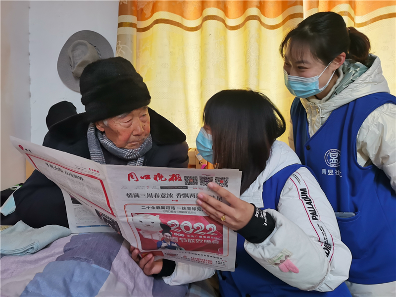 今年80歲的李東明,喜歡讀書看報,但是由于年齡原因視力逐漸下降,讀書看報越來越不方便。自從敬老院內設立了社工站,他每天最高興的事就是社工為他讀報紙上的內容。“幸虧這些孩子的陪伴,讓我的老年生活越來越幸福!”李東明說。