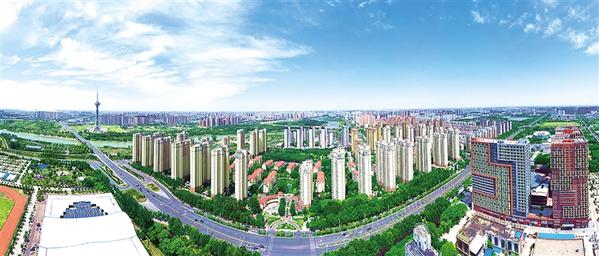5月26日上午,藍天白云下的周口市城鄉一體化示范區街景格外漂亮。近年來,我市錨定“兩個確保”、深入實施“十大戰略”三年行動計劃,全力以赴拼經濟、惠民生,加強生態文明建設,努力將中原港城打造成水清、景美的生態宜居之城。