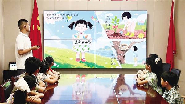 返鄉大學生志愿者魏柏宇向孩子們介紹珍稀鳥類的外形特征、生活習性與生存現狀。近日,鄲城縣自然資源局組織工作人員、返鄉大學生志愿者到該縣新城街道秀水社區開辦科普課堂,旨在通過生動講解與互動實踐,深化社區青少年對生態保護的認識。記者 徐松 通訊員 陳吳陸 攝