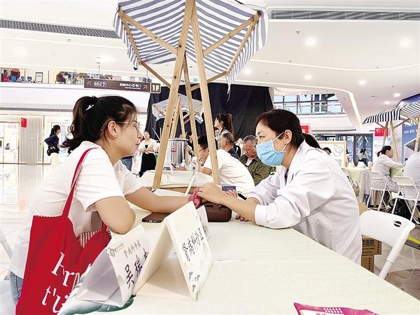 9月20日,周口市中醫院“中醫市集”走進周口中心城區開元萬達廣場,為市民提供中醫義診、中藥辨識、推拿按摩等服務。