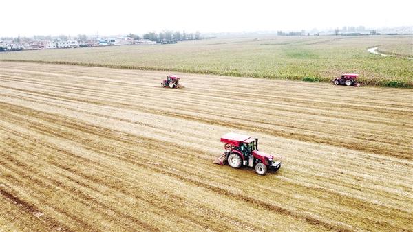 10月14日,市城鄉一體化示范區許灣街道孔莊村村民在田間耕作。連日陰雨暫歇,農戶們利用晴好天氣,與時間賽跑,抓緊秋播。記者 劉俊濤 攝