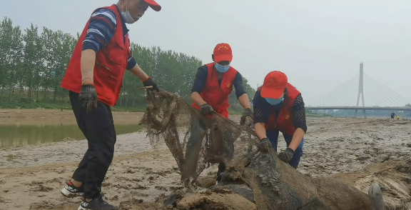 志愿者對沙潁河開展“凈灘行動”