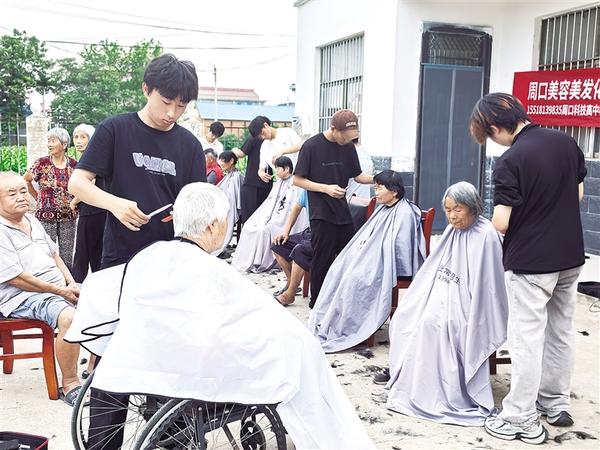 “我還是頭一次享受理發師上門服務,太高興了。”6月30日下午,沈丘縣卞路口鄉張保元村村民馬桂榮撫摸著剛剪過的頭發,臉上樂開了花。當日,張保元村駐村第一書記劉會見組織周口科技職業高中的劉宇、李杰等7名志愿者來到張保元村開展義剪活動。