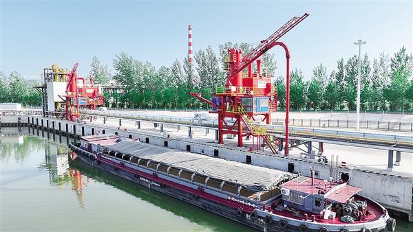 今年一季度,我市港口生產實現“開門紅”,周口港貨物吞吐量達到1427萬噸,同比增長76.33%,集裝箱吞吐量完成4.96萬標箱,同比增長56%。圖為4月23日,一艘裝滿糧食的貨船正停靠在碼頭等待卸糧。