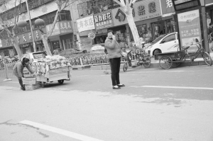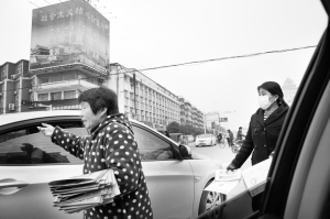 圖① 中心城區每個路口都存在不同程度的攔車散發傳單現象,既不文明又不安全。