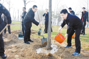 3月12日,皇甫立新等在植樹點植樹。當日,沈丘縣四個班子領導來到縣城東環路綠化帶植樹點,與當地群眾一起揮鍬鏟土,參加義務植樹活動。(記者 韋偉 通訊員 艾長青)