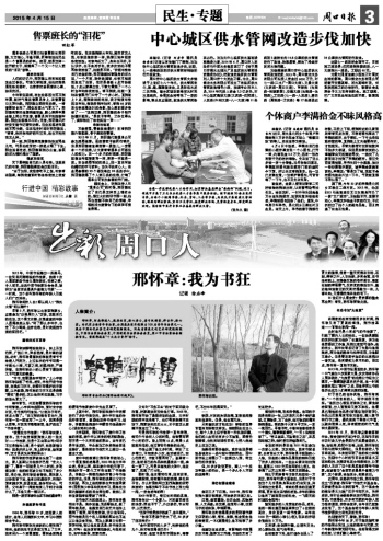 每年春節,村民都要請邢懷章的爺爺寫春聯。小學四年級那年,面對求字的村民,爺爺笑呵呵地說:“讓我孫子寫吧,有點火候了。”在父輩的驚奇目光中,邢懷章一筆一畫地寫了一上午,還真是那么回事,村民無不嘖嘖稱贊,他儼然成了“書法神童”。