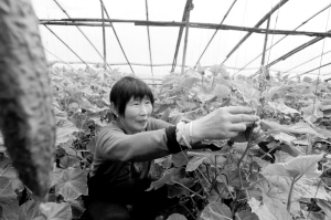 昨日,商水縣東城辦事處農戶正忙著給大棚黃瓜吊蔓。該縣充分發揮城郊優勢,大力發展反季節、無公害蔬菜種植,畝均收入近萬元,不僅豐富了市民的菜籃子,而且鼓起了菜農的錢袋子。