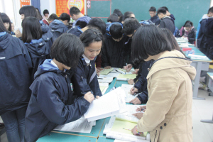 該校將課堂名字定為“求真大課堂”,以“真”字作為學校一切教育教學和管理的衡量標準。朱貴華說,求真就是要真教、真學、真嚴、真愛、真實、真會。為提高課堂教學效果,該校總結出一套獨特的課堂教學方法——“七音和鳴”。分管教學工作的副校長徐其運用“1234567”,即哆來咪發唆拉西”來詮釋“七音和鳴”法。“1”就是一個學習目標;“2”就是提前兩分鐘進班,布置2個任務(出示目標、檢查學情);“3”就是準備3個本子,即學情檢效本、跟蹤本、糾錯本;“4”是4個維度考評,即高速度、準確度、干凈度、參與度;“5”是5個跟蹤,即節跟蹤、日跟蹤、周跟蹤、月跟蹤、學期跟蹤,堅持“抓緊跟蹤不放松、我在文昌必成功”的教育信念;“6”是6個環節,即激情導入、自研自探、合作探究、展示質疑、師生點評、當堂檢測;“7”是7個評價,即教師的教案、學生的學案、練案、觀課記錄的每周業務評價及對學生的即時性、激勵性、長效性評價。