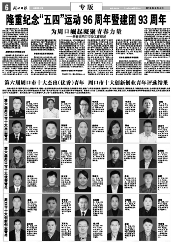 第六屆周口市十大杰出(優秀)青年 周口市十大創新創業青年評選結果