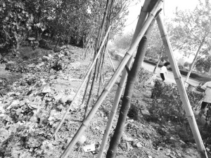 上圖 負責清掃周口大道段的環衛工把垃圾倒在周口大道路邊的河溝中(幼兒師范學校北側100米路西),而距此不遠的嵩山路口(周師北墻外)就有一個垃圾中轉站。