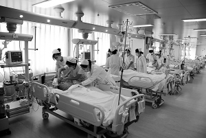5月4日上午8點(diǎn)45分,記者走進(jìn)了周口市中醫(yī)院綜合病房樓七樓的重癥醫(yī)學(xué)科(即ICU病房),護(hù)士長(zhǎng)徐亞鵬熱情地接待了我們。在徐亞鵬的介紹下,我們親眼目睹了重癥醫(yī)學(xué)科內(nèi)病人的各種反應(yīng)。當(dāng)天病人不太多,10個(gè)床位只有7個(gè)病人,其中有產(chǎn)后大出血的、有肝癌晚期的、有有機(jī)磷農(nóng)藥中毒的……幾乎每個(gè)人都上著呼吸機(jī)。身著紫色護(hù)士服的“天使”們?cè)诟鞣N儀器和各個(gè)危重病人間來(lái)回穿梭。