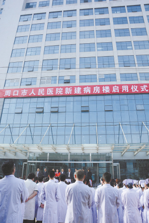 本報訊 4月24日,周口市人民醫院新病房樓舉行啟用儀式,標志著這一重點民生工程即日起正式投入使用(左圖)。新病房樓的投入使用,將大大改善人民群眾的就醫環境,成為保障人民群眾醫療健康的一支重要力量。